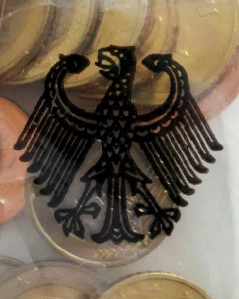 01 Adlerdarstellung auf den Beuteln von A, D, F, G in offener Form.