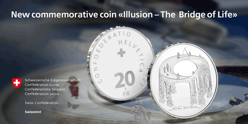 Banner, Cosmos of collectibles, Illusion – Viadukt des Lebens, CHF 20.- Silbermünze Ag, GIF 2sec, 822x411px, Englisch, 20210503, Marketing, Frey