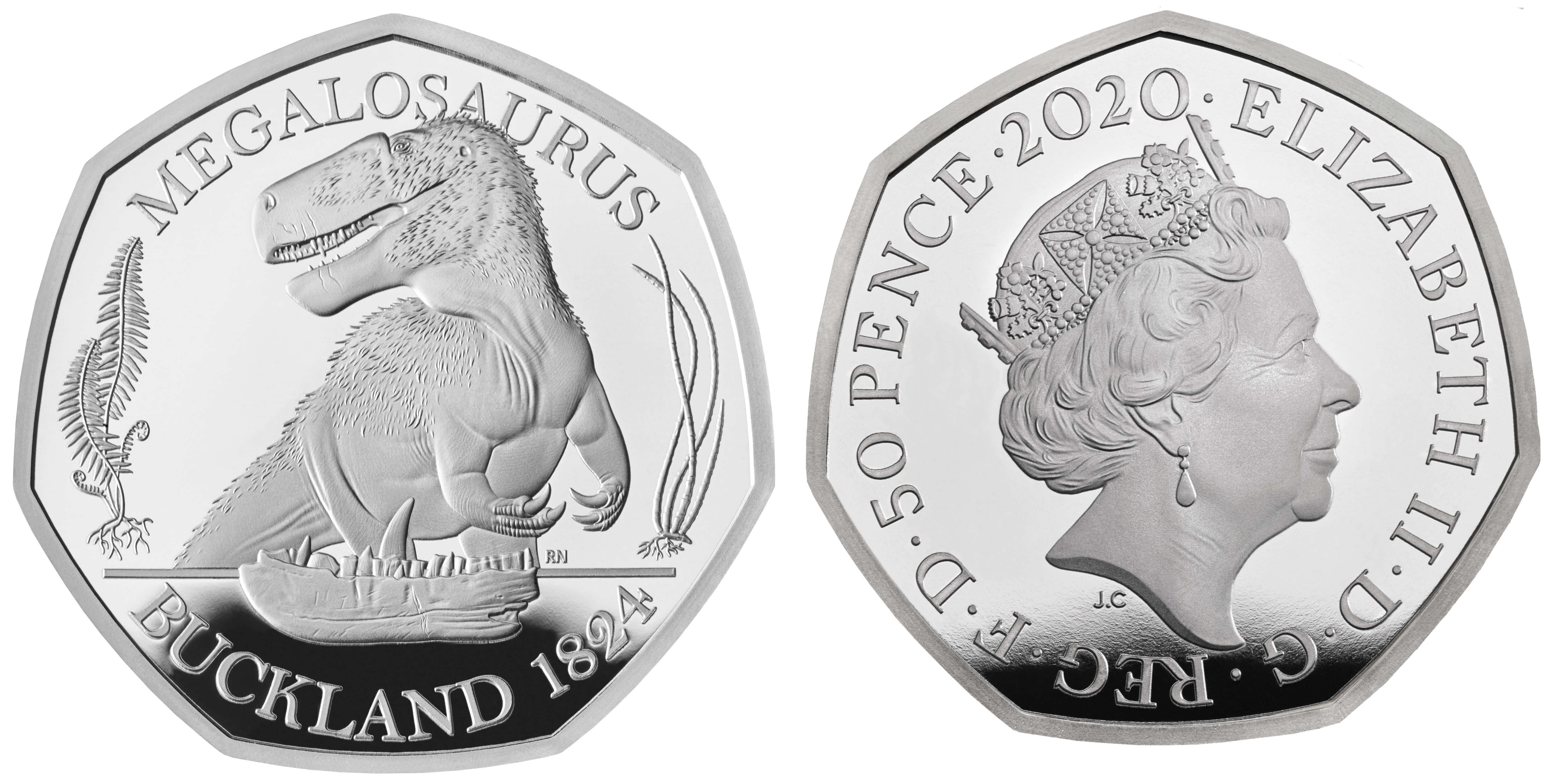 00_The_Dinosauria_Collection_-_Megalosaurus_2020_UK_50p_Silver_Proof_Coin_reverse_tone_-_UK20MGSP_-_pad_pri